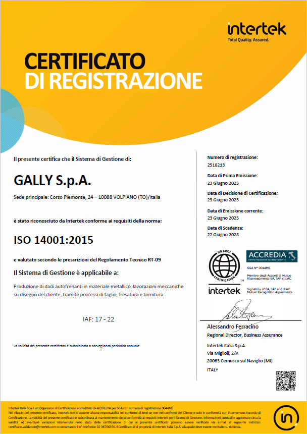 Pour atteindre ces objectifs, notre système d’entreprise est certifié selon la norme UNI EN ISO 14001:2015.