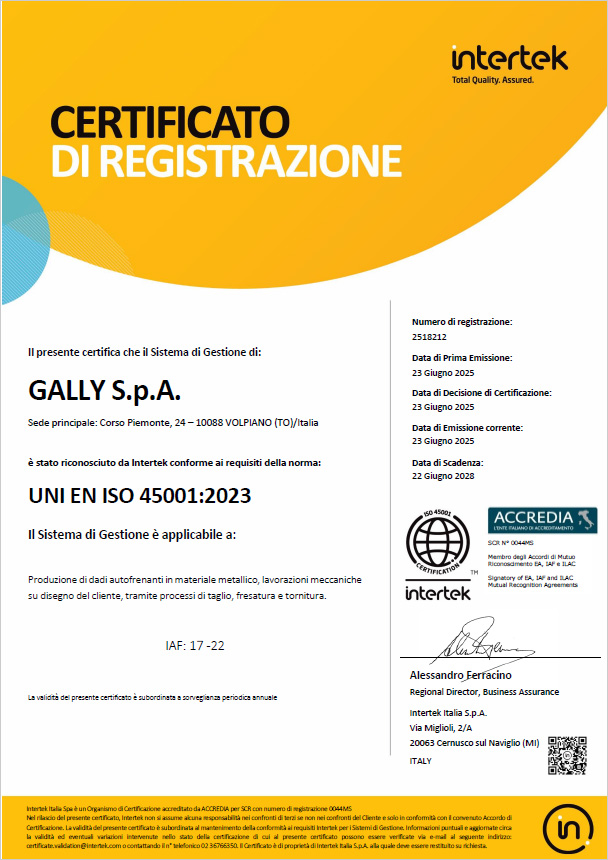 Afin d’atteindre ces résultats, le système de l’entreprise est certifié selon la norme UNI EN ISO 45001:2023.